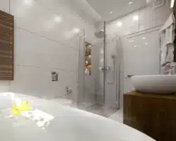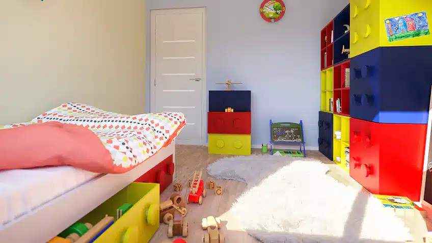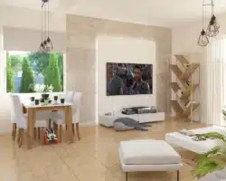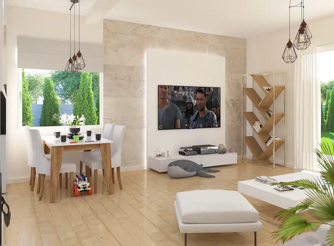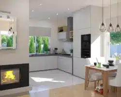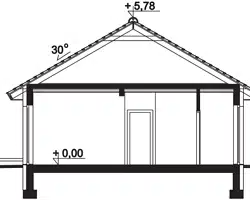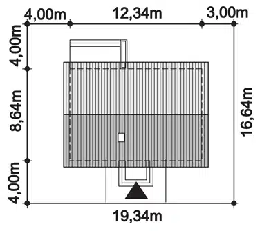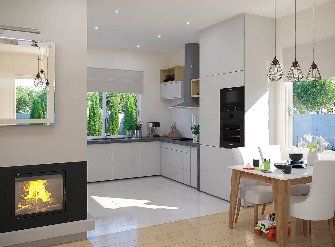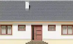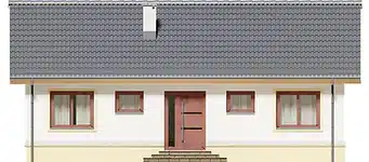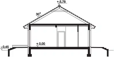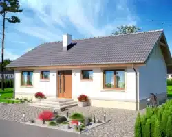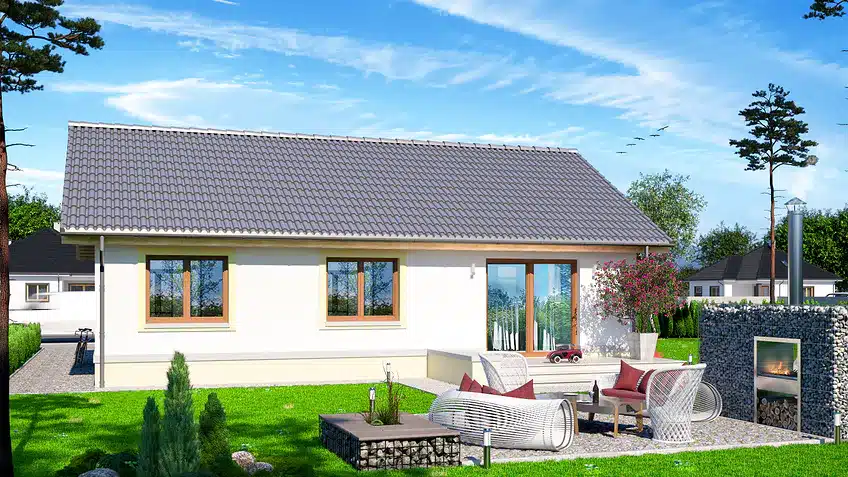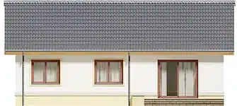 Das kleine und sehr funktionale Tebe eignet sich perfekt für eine Familie mit 2 bis 4 Personen. Dank seiner einfachen Form und geringen Abmessungen passt es sich fast jedem Grundstück an, auch kleinen. Der Schlafbereich umfasst drei geräumige Schlafzimmer, wobei sich die Fenster eines davon an der Vorderseite (auf der Eingangsseite) befinden. Angrenzend befindet sich ein gemeinsames Badezimmer, das den privaten Bereich komfortabel ergänzt. Die Zimmer gehen auf einen kleinen Flur hinaus, der als Puffer zwischen den Bereichen Schlaf-, Eingangs- und Wohnbereich dient. Der Flur ist so geräumig, dass darin Platz für einen Kleiderschrank und Kleiderbügel ist. Der Wohnbereich besteht aus einem offenen Raum, der sich entlang der Giebelwand erstreckt und Fenster hat, die nach drei Seiten ausgerichtet sind. Dies ermöglicht eine gute Belichtung während des ganzen Tages und eine ausreichende Belüftung. Das Wohnzimmer und das Esszimmer öffnen sich zur Außenterrasse, die eine Erweiterung des Gemeinschaftsbereichs darstellt. Auf der gegenüberliegenden Seite befindet sich eine halboffene Küche und daneben ein geschlossener Heizungsraum, der gleichzeitig als Speisekammer dient. Die geringe Kubatur, die kompakte Form und die Technologie, mit der das Gebäude errichtet wurde, ermöglichen Einsparungen bei den Heizkosten.