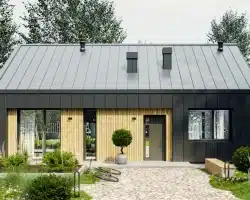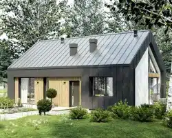Das Projekt PióroArchitekci-23 in der Skelettversion ist ein Angebot für diejenigen, die einen modernen Lebensstil im Einklang mit der Natur schätzen. Dieses einstöckige Haus besticht durch seine kompakte Form, die alles bietet, was eine moderne Familie braucht – Raum, Komfort und Licht.