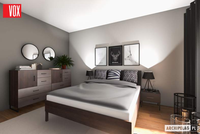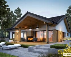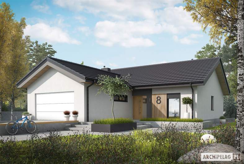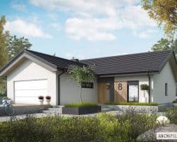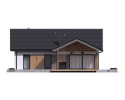 Das Hausprojekt Simon IV G2 ist ein einstöckiges Gebäude mit einer Doppelgarage und einer Nutzfläche von 112,31 m². Die moderne Fassade, die Mauerwerkstechnik und das Satteldach machen das Gebäude zu einem Blickfang, der Nachbarn, Passanten und Freunde begeistern wird. Das Projekt ist auf die Bedürfnisse einer bis zu vierköpfigen Familie zugeschnitten. Dank der Verwendung moderner Lösungen kann es eine attraktive Investition für nachfolgende Generationen sein.