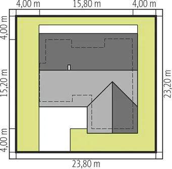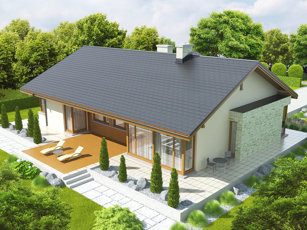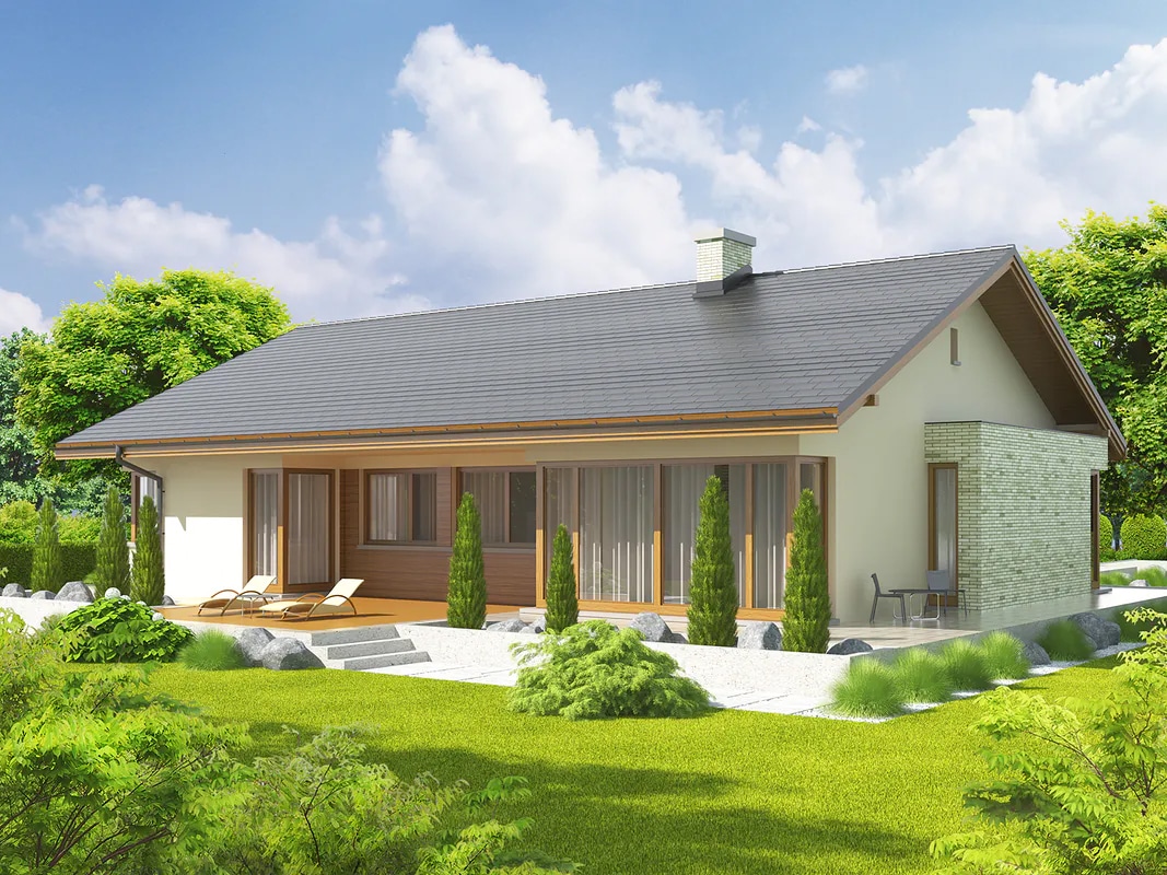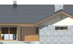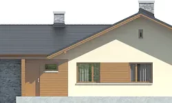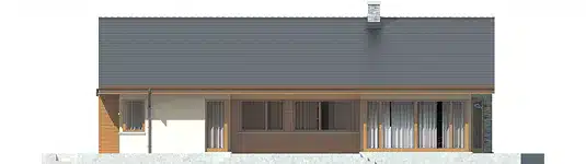 The Alberta G1 house project is an ideal proposal for people who have a plot of medium width. The house has an L-shaped floor plan, which gives it an original appearance. The ridge runs parallel to the street, which is often specified in development plans. The house was designed as a detached building. The architect has provided for a single garage set forward. The design is ideal for anyone interested in a house with a gable roof, as this allows for significant savings. The entrance to the building faces south, which is an important solution for people whose plot is accessible from this side. The Alberta G1 project is a single-story house, making it very easy to walk around. The living area provided for in the design will certainly satisfy those who enjoy spending time with their family. It includes, among other things, a kitchen that is the ideal solution for both traditional and modern housewives. Another useful space is the spacious pantry. The living area also includes a spacious living room and dining room. The fireplace in the living room not only looks great, but also provides pleasant warmth on colder days. The design includes two bathrooms, which makes morning preparations for going out much easier. The sleeping area consists of three bedrooms, which are well suited for a family of 2-4. The room can also be used as a guest room or study. The terrace is the ideal place for family gatherings and moments of relaxation. The building was designed using solid construction methods. Its shape features solutions that tie in with modern style and meet even high expectations in terms of visual appeal.