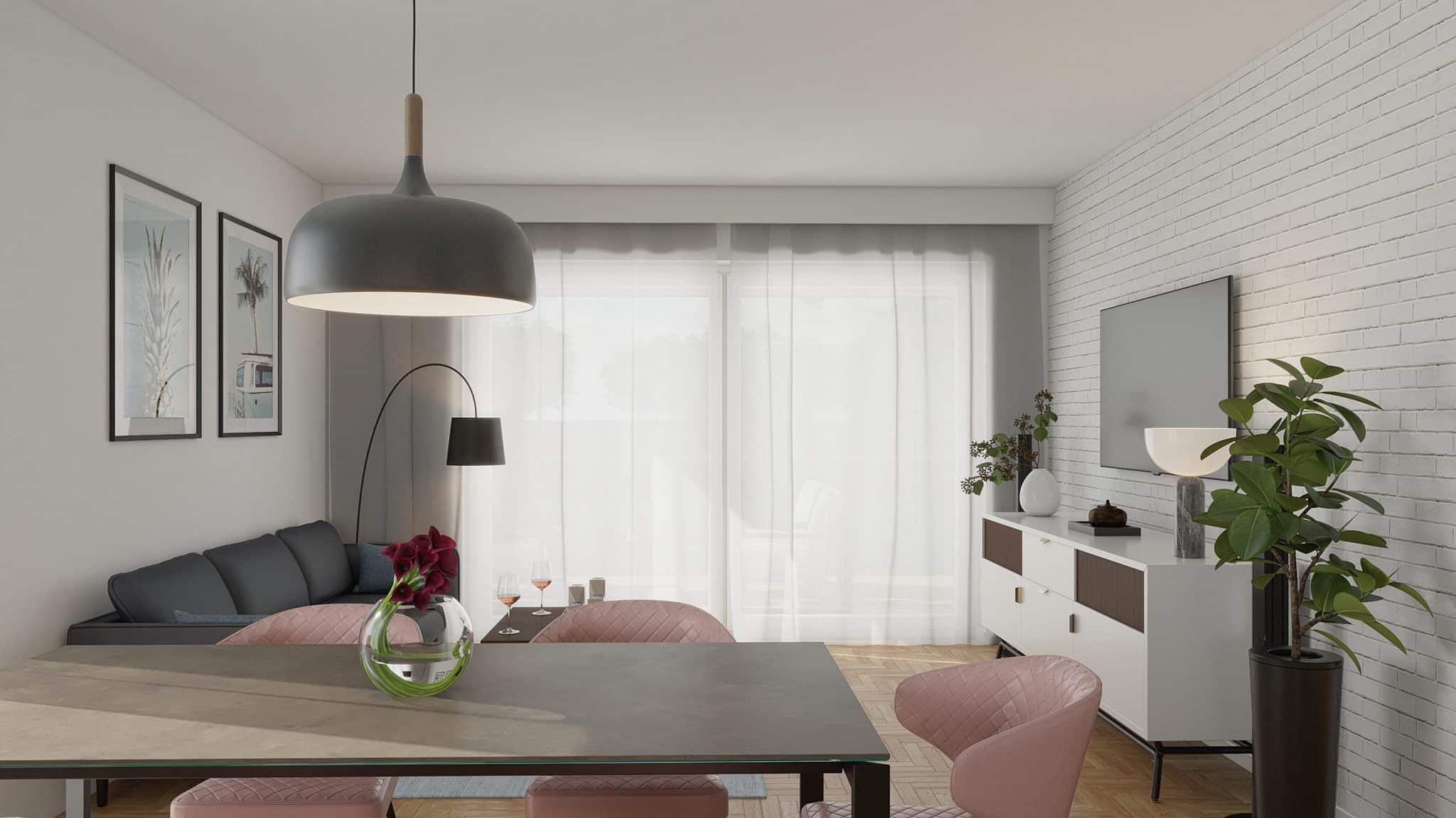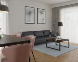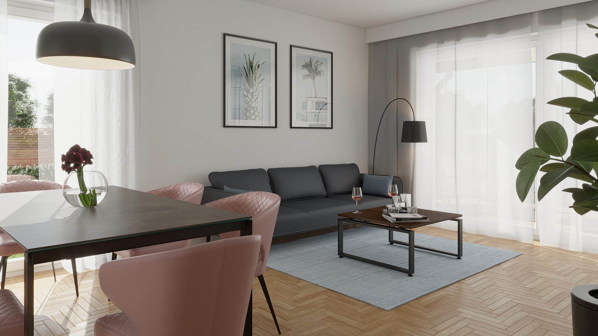 Variant 2 offers an even larger living room with kitchenette, a spacious bathroom, and two rooms.