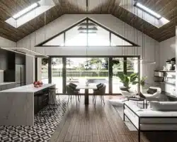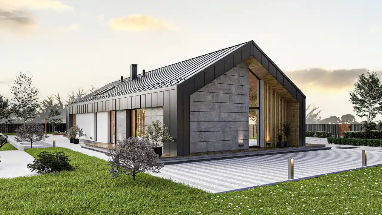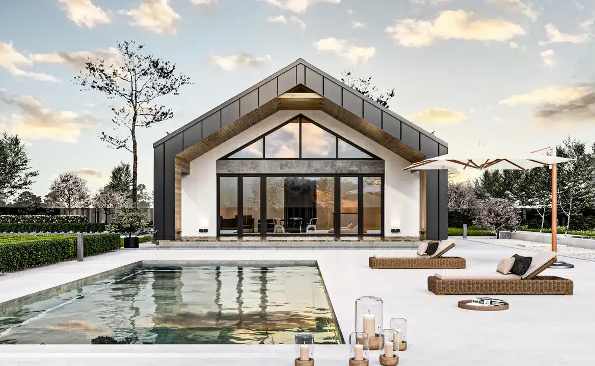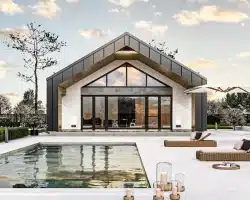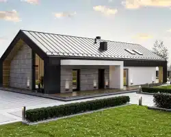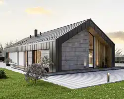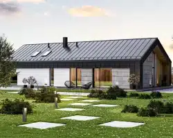 Another proposal is an extraordinary single-story house in the style of a modern barn with a usable area of 132.5 m².