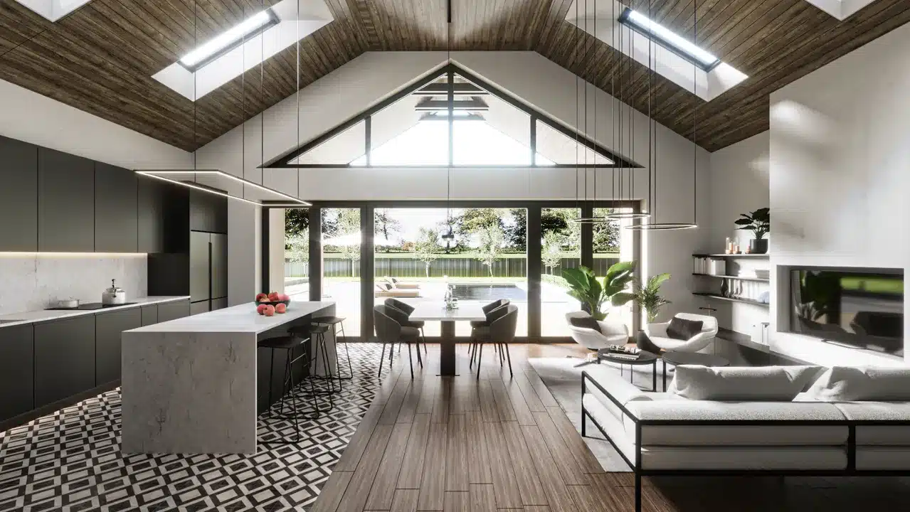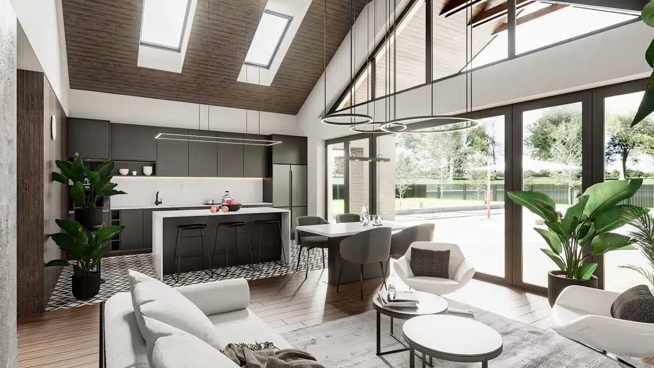 The impressive glazing allows countless rays of sunlight into the house, giving it an incredible atmosphere.