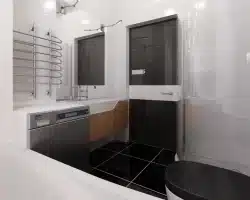 The ground floor is accessed via a covered entrance that leads directly into the hallway, from where you can continue into the entrance hall. This serves as a connecting passage between the individual rooms. The ground floor can be divided into two areas, the living area and the sleeping area. One area has three bedrooms and a large bathroom, while the other has a living room with dining area and kitchen, as well as a utility room. The living room opens onto a covered terrace, which is a lovely place to spend the evening. Large glass doors offer a view of the garden, creating a sense of unity with the outdoor environment.